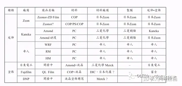 因此,虽然在三星主导的AMOLED产品中,以1/2λ 1/4λ延伸型相位差膜迭层的方式补偿效果最好,但相对厚度及成本都相当可观。